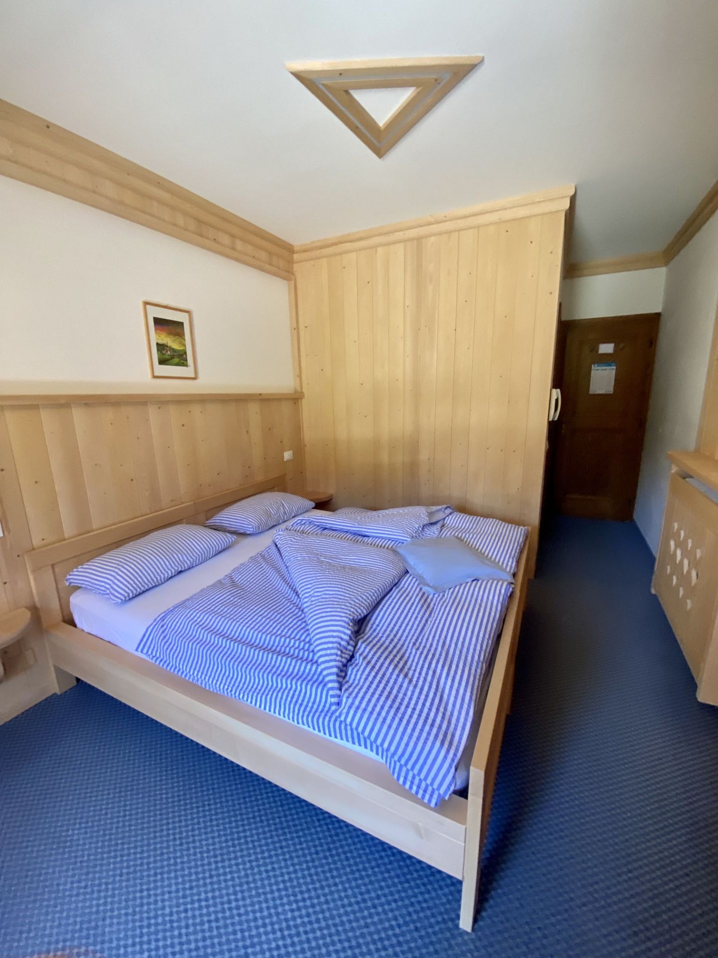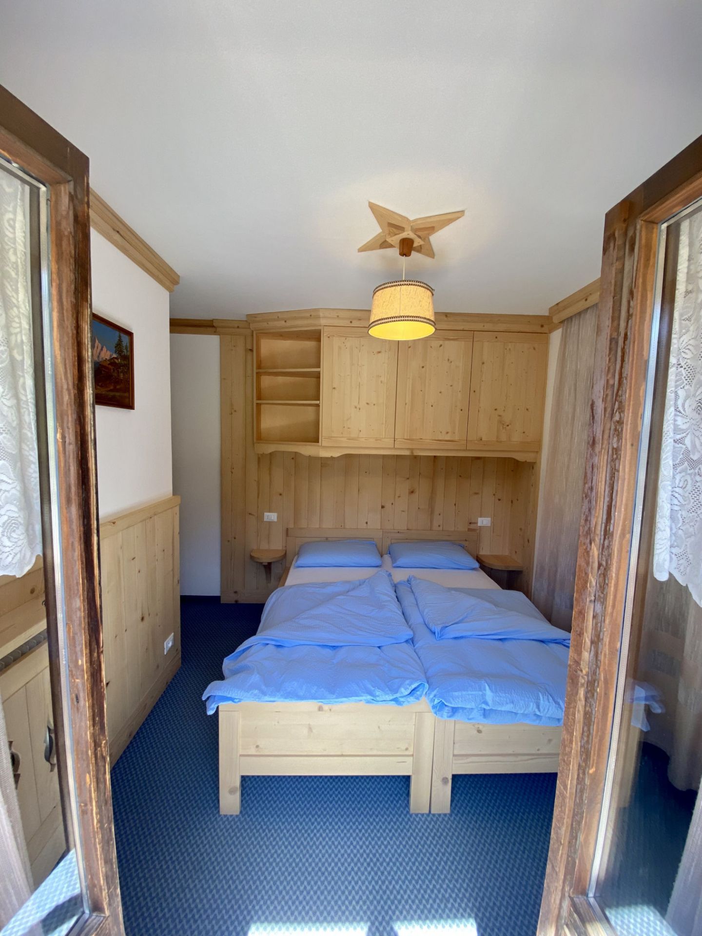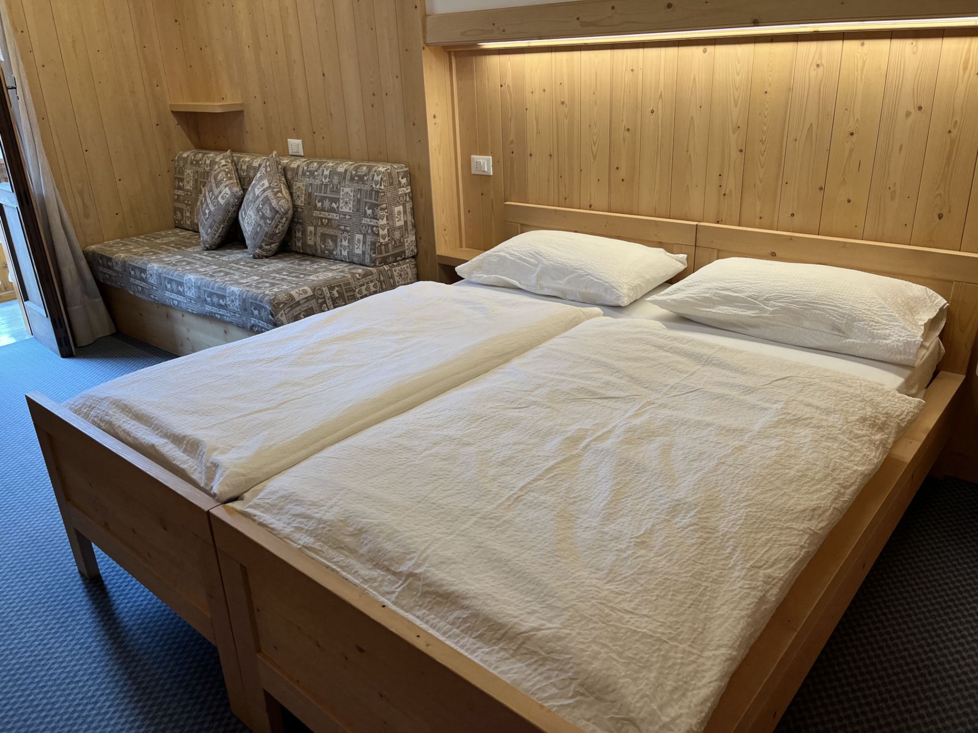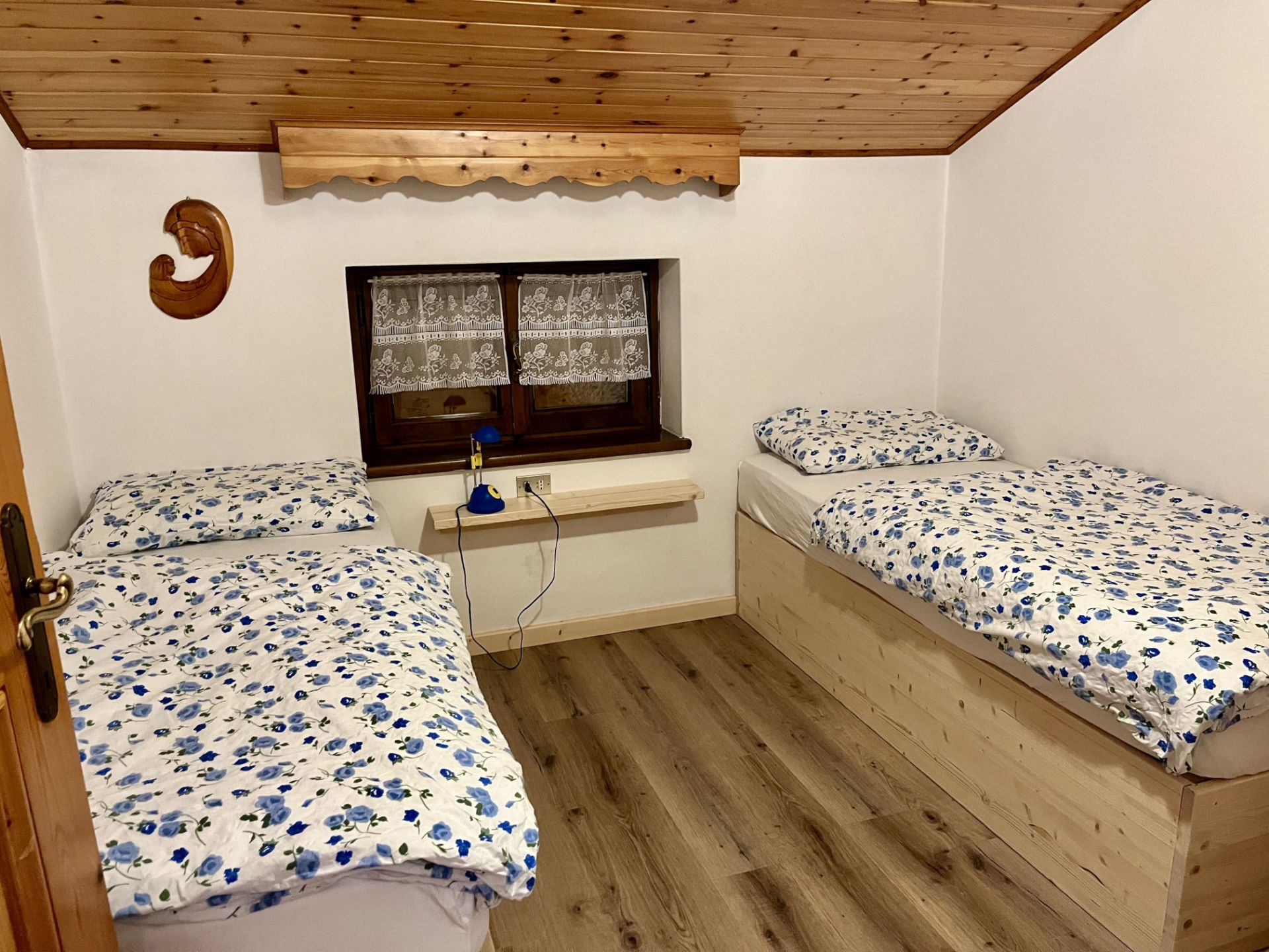 Camera doppia con due letti separati, completamente arredata in legno, dotata di balcone privato e lavandino. La camera si trova al secondo piano. I servizi igienici e la doccia si trovano al piano terra dove troverai un locale comodo, spazioso e solo a tua completa disposizione. I letti sono preparati con piumoni singoli alla tedesca. Camera dal prezzo economico, ideale per qualche notte.