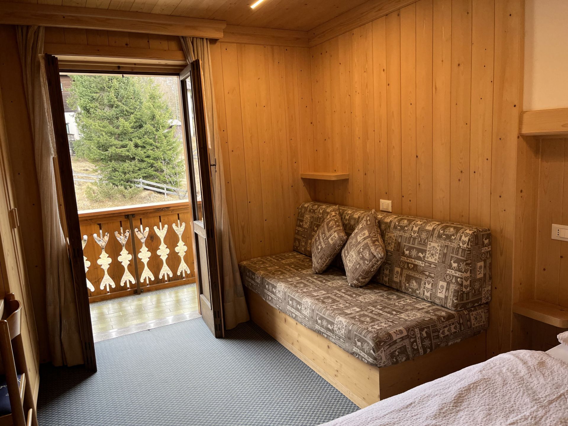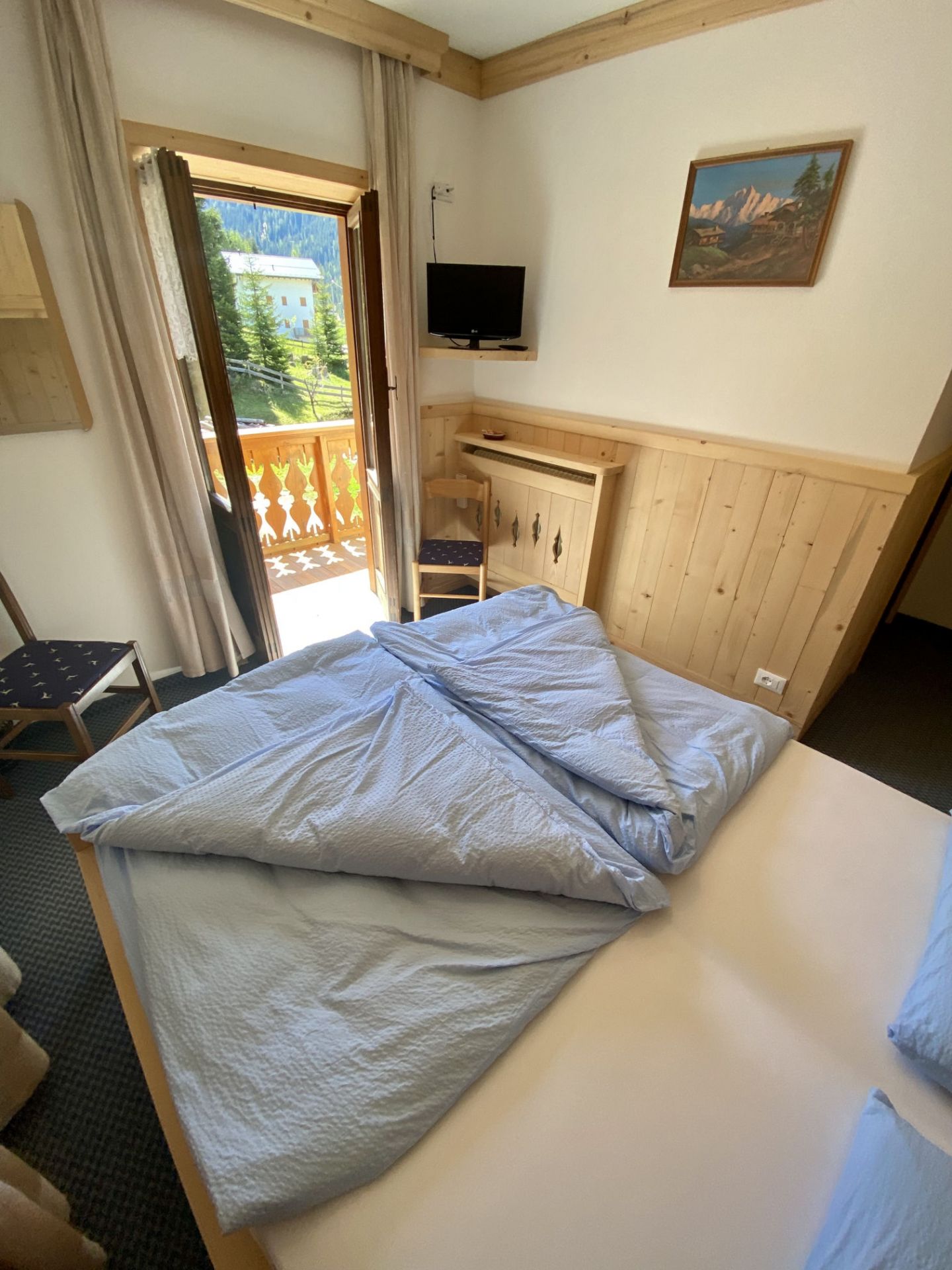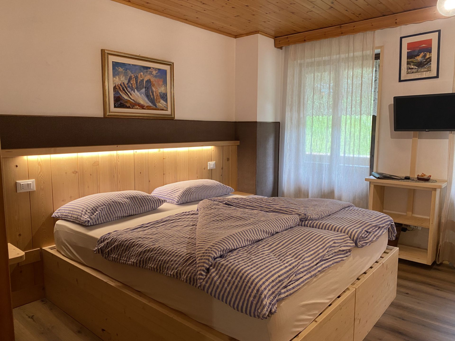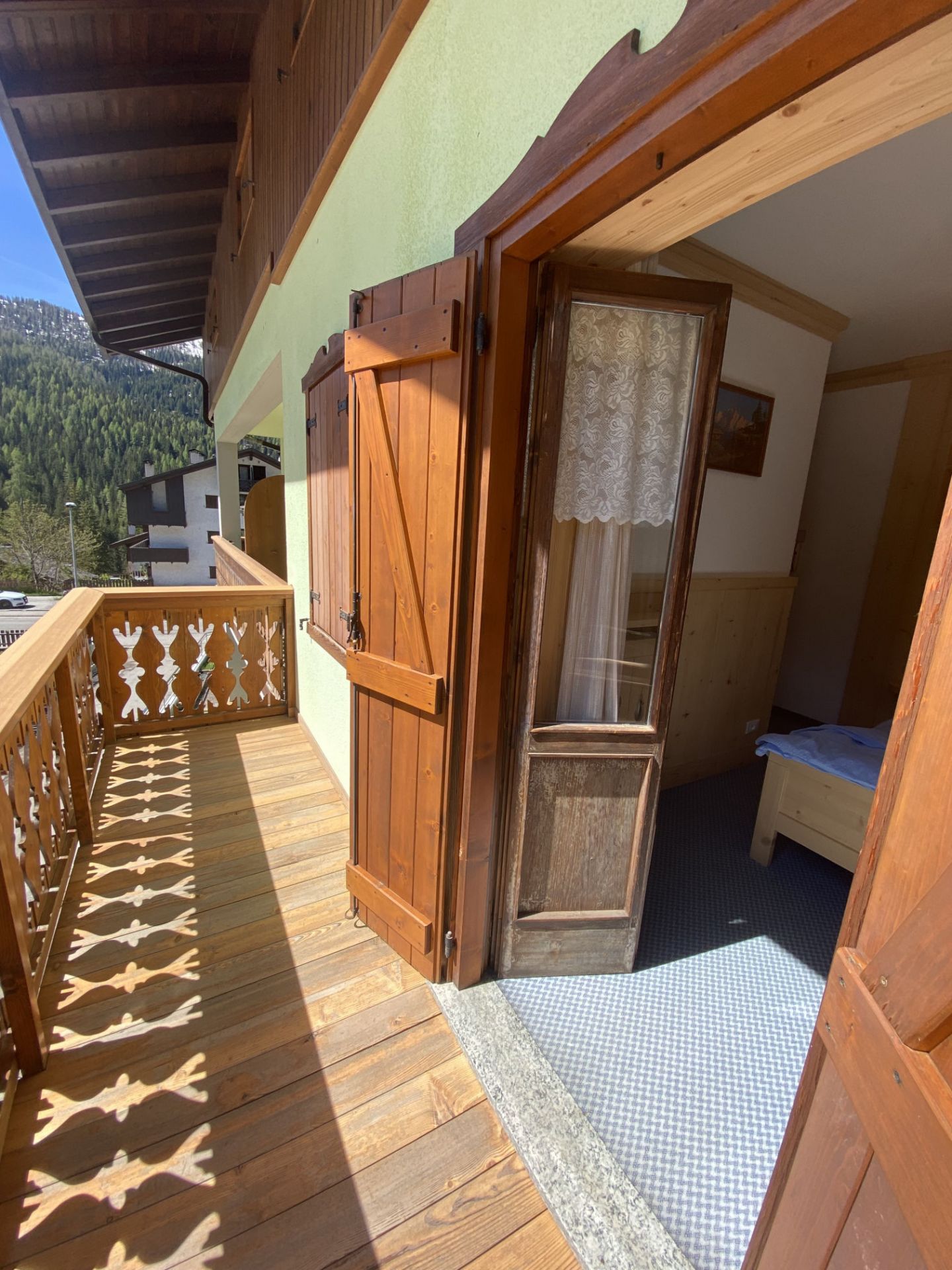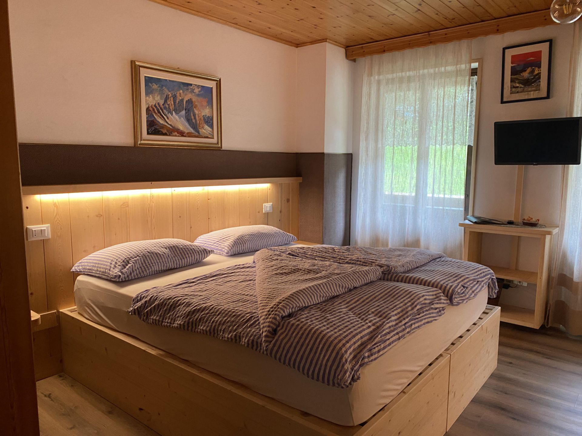 Camera matrimoniale completamente arredata in legno che emana il suo inconfondibile profumo, dal quale potrai lasciarti avvolgere. È dotata di due balconi indipendenti con vista sul Monte Piz del Corvo e Monte Pelmo, dove potrai trascorrere in tranquillità le tue serate leggendo un libro o annotando la tua giornata e le tue mattine con i caldi raggi del sole che sorge. La camera matrimoniale standard è l’ideale per una coppia o viaggiatori singoli, è dotata di letto matrimoniale, TV a schermo piatto, armadio e scrivania, bagno privato con doccia. I letti sono preparati con piumoni singoli alla tedesca.