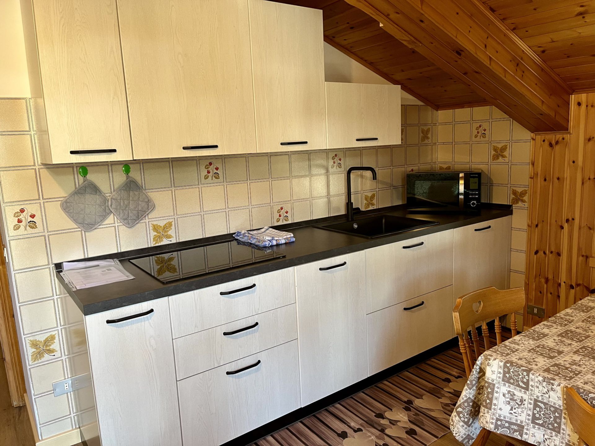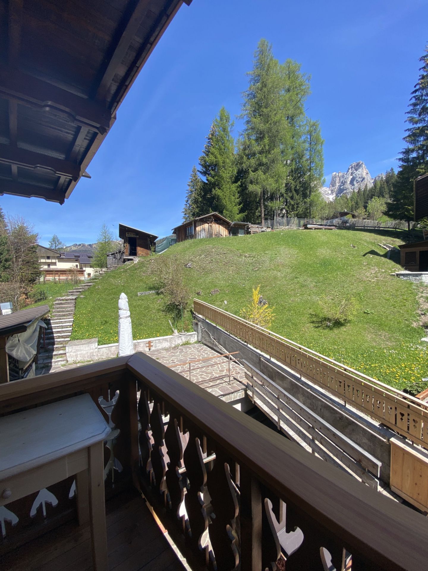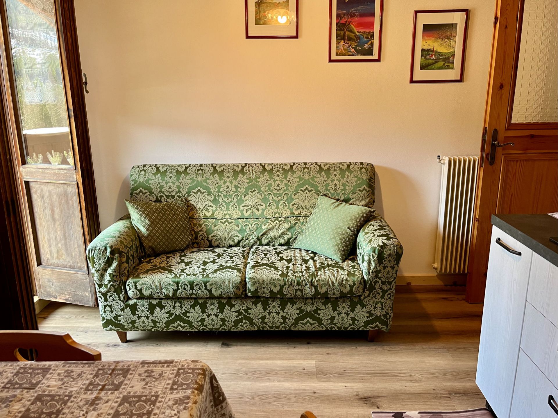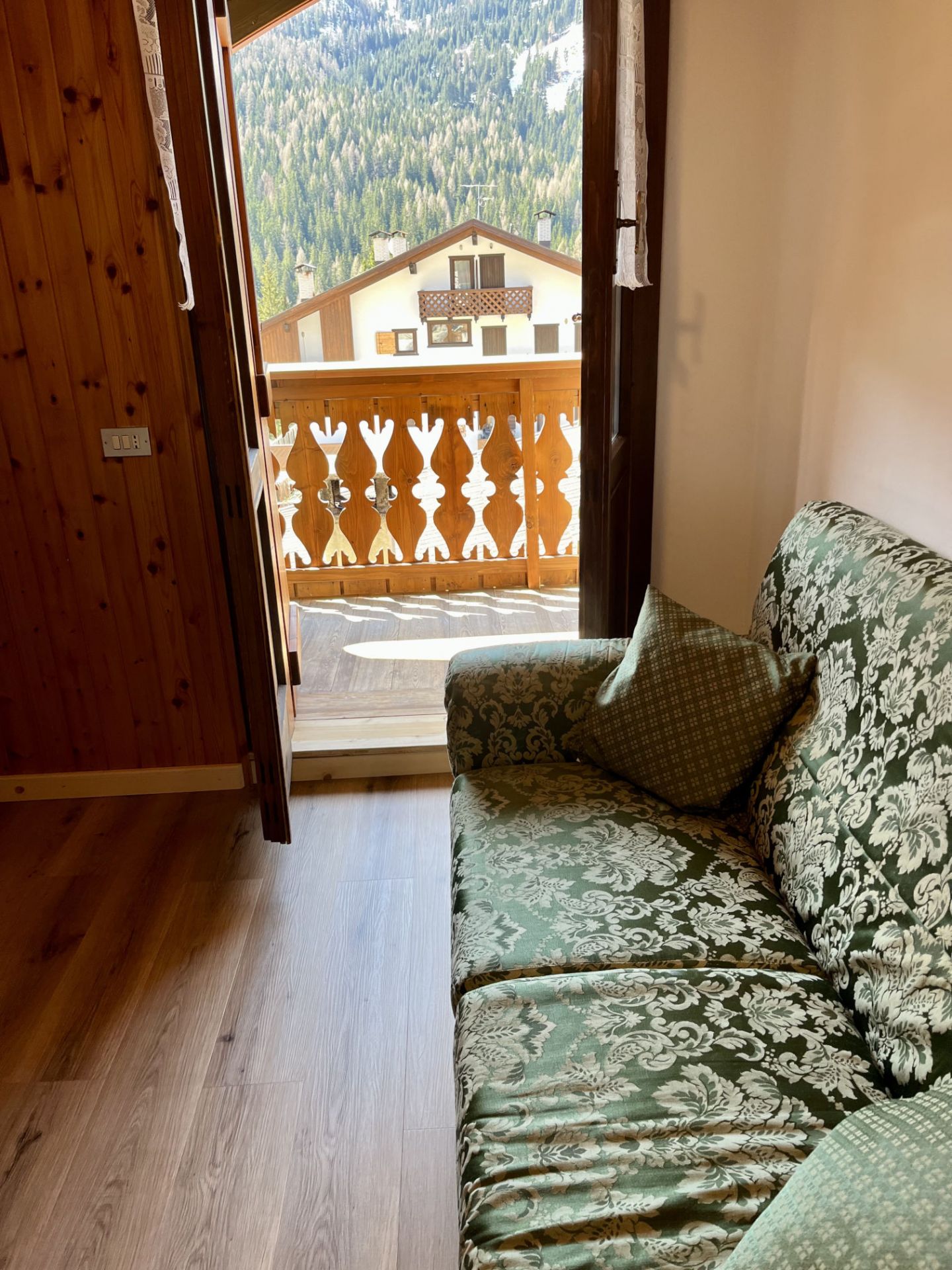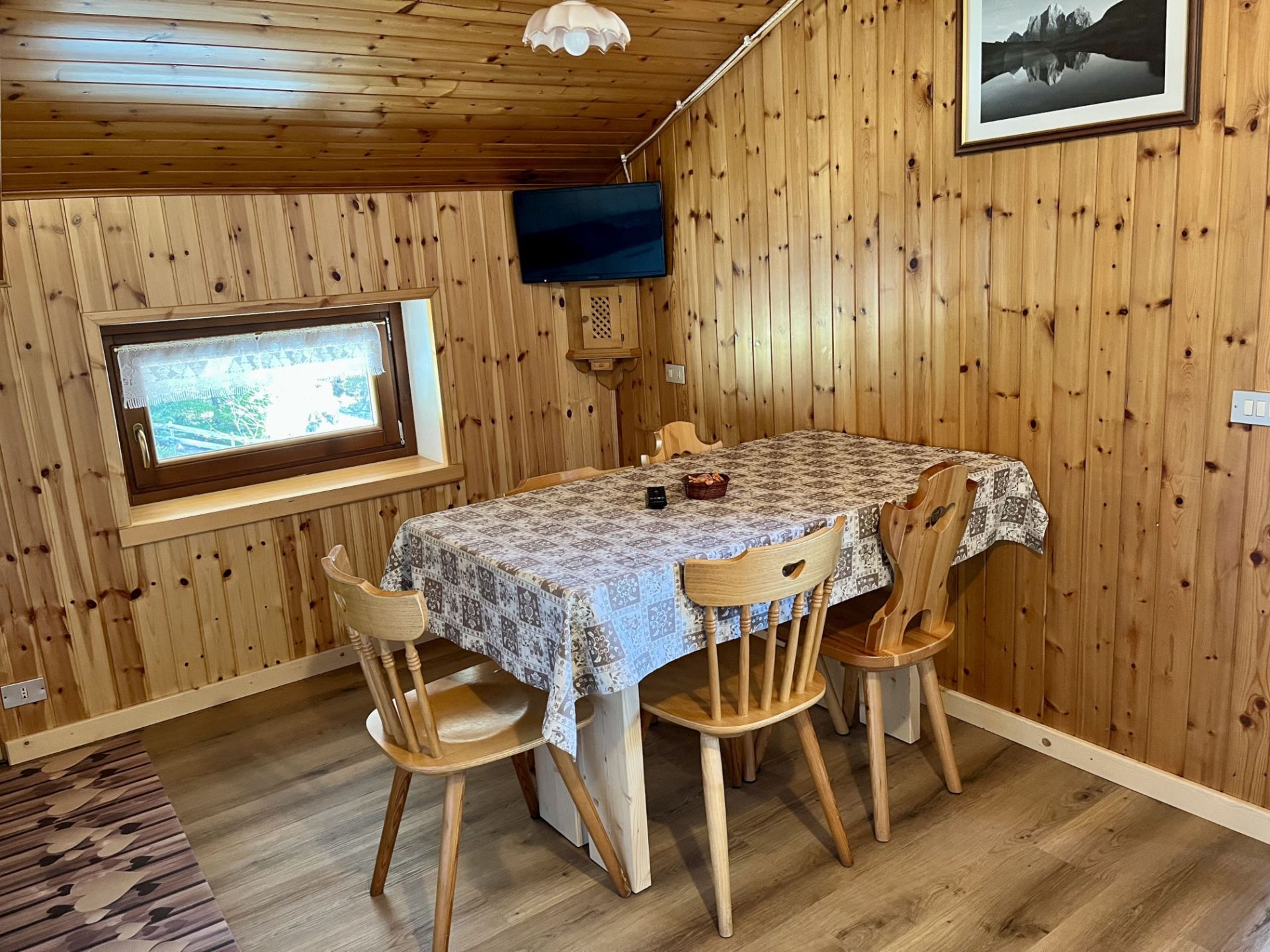 - 1 cucina soggiorno completa di lavastoviglie, microonde, piastra ad induzione, frigorifero con freezer, TV e divano- ampio balcone che gode del sole per tutto il giorno con una strepitosa vista panoramica sul Monte Civetta, Monte Fertazza e Marmolada