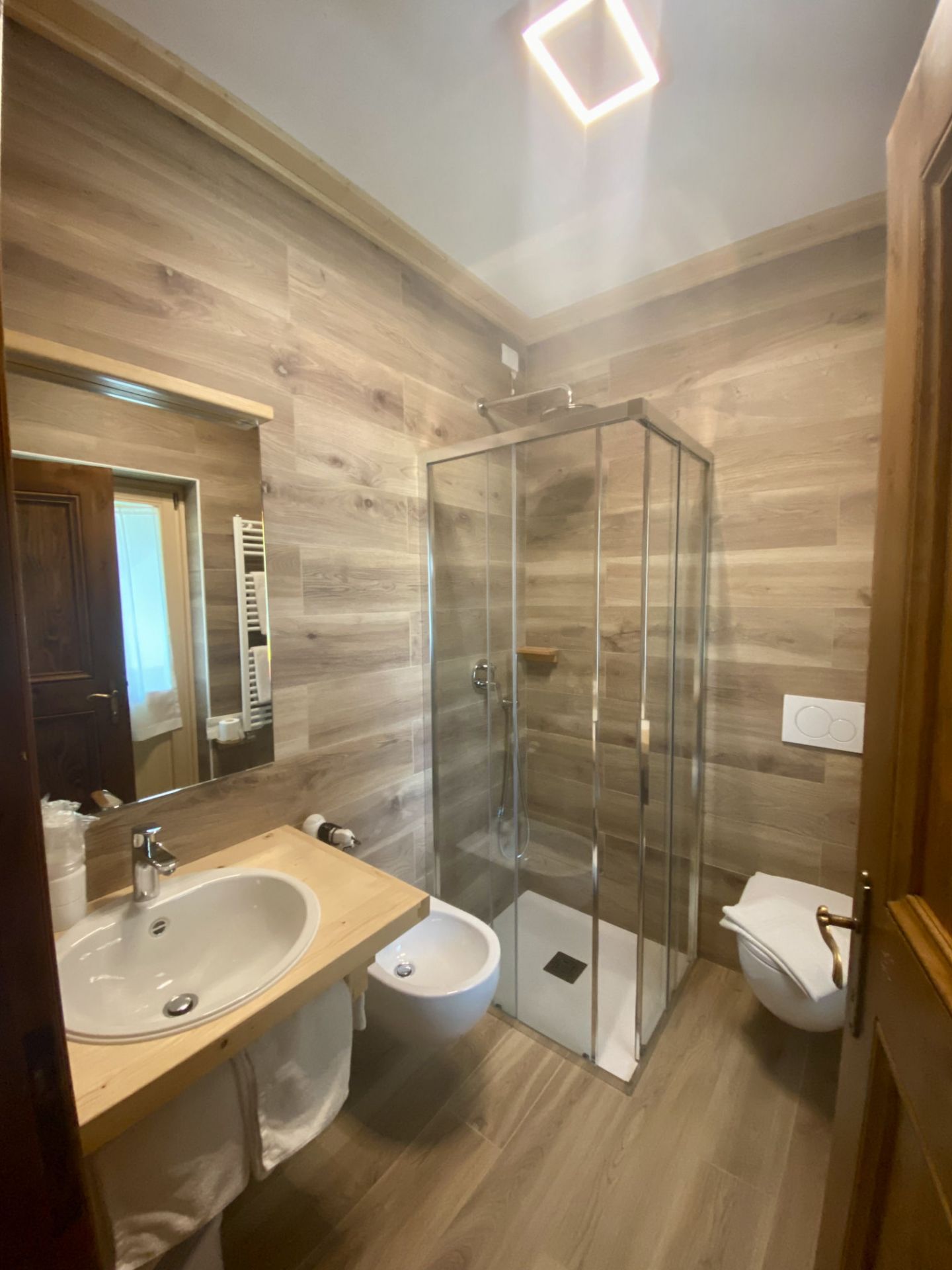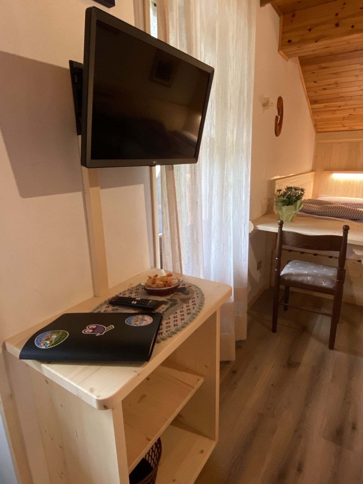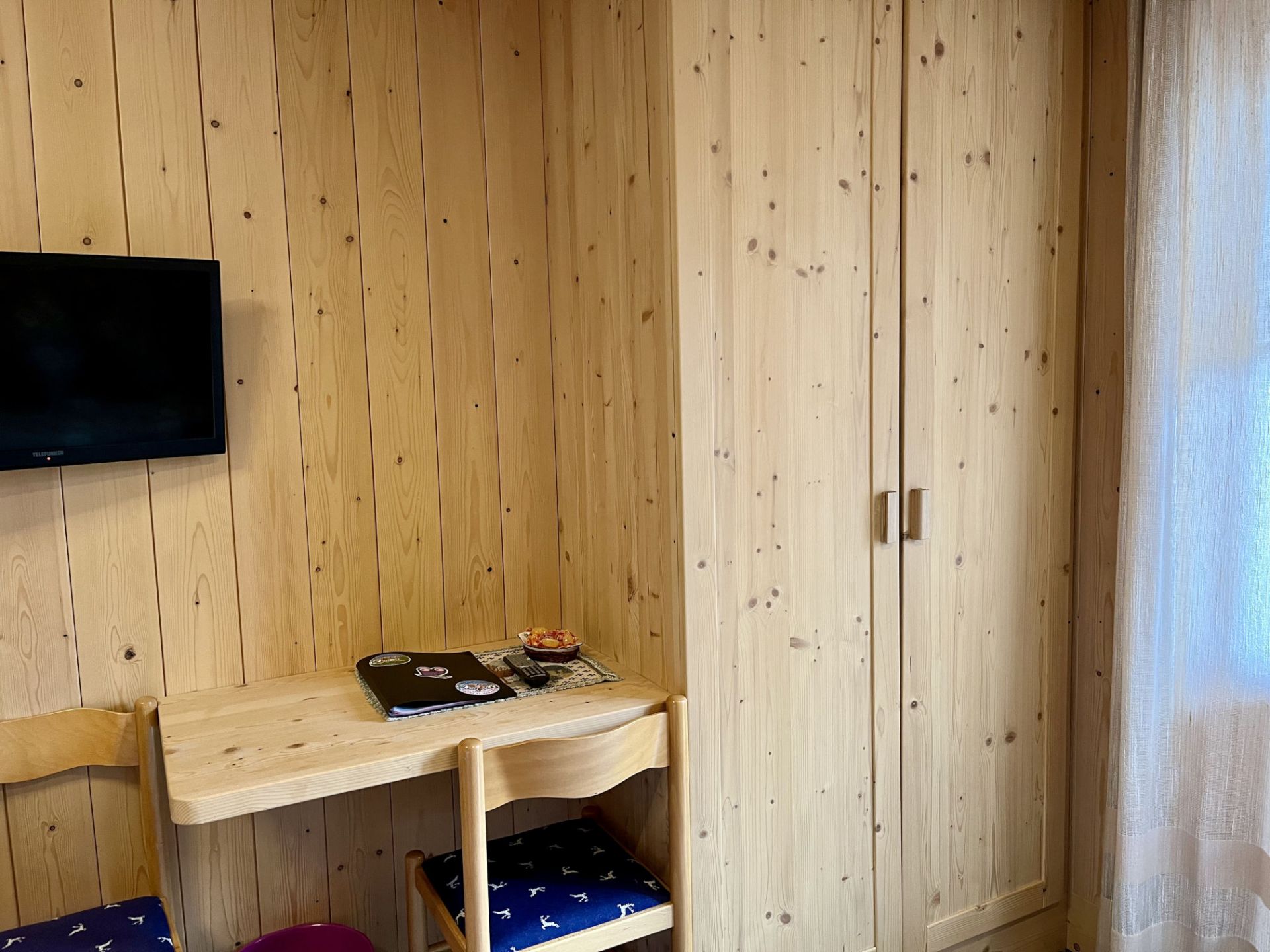 Sarai coccolato dal calore del legno e rivitalizzato da una vista sul Monte Pelmo e sul Monte Civetta. La mattina ti potrai svegliare con i luminosi raggi del sole, che sorge dietro l’imponente e magico Monte Pelmo, che potrai inoltre ammirare dal comodo balcone. La camera è dotata di letto matrimoniale e un letto singolo, TV a schermo piatto, armadio e scrivania, bagno privato con doccia.