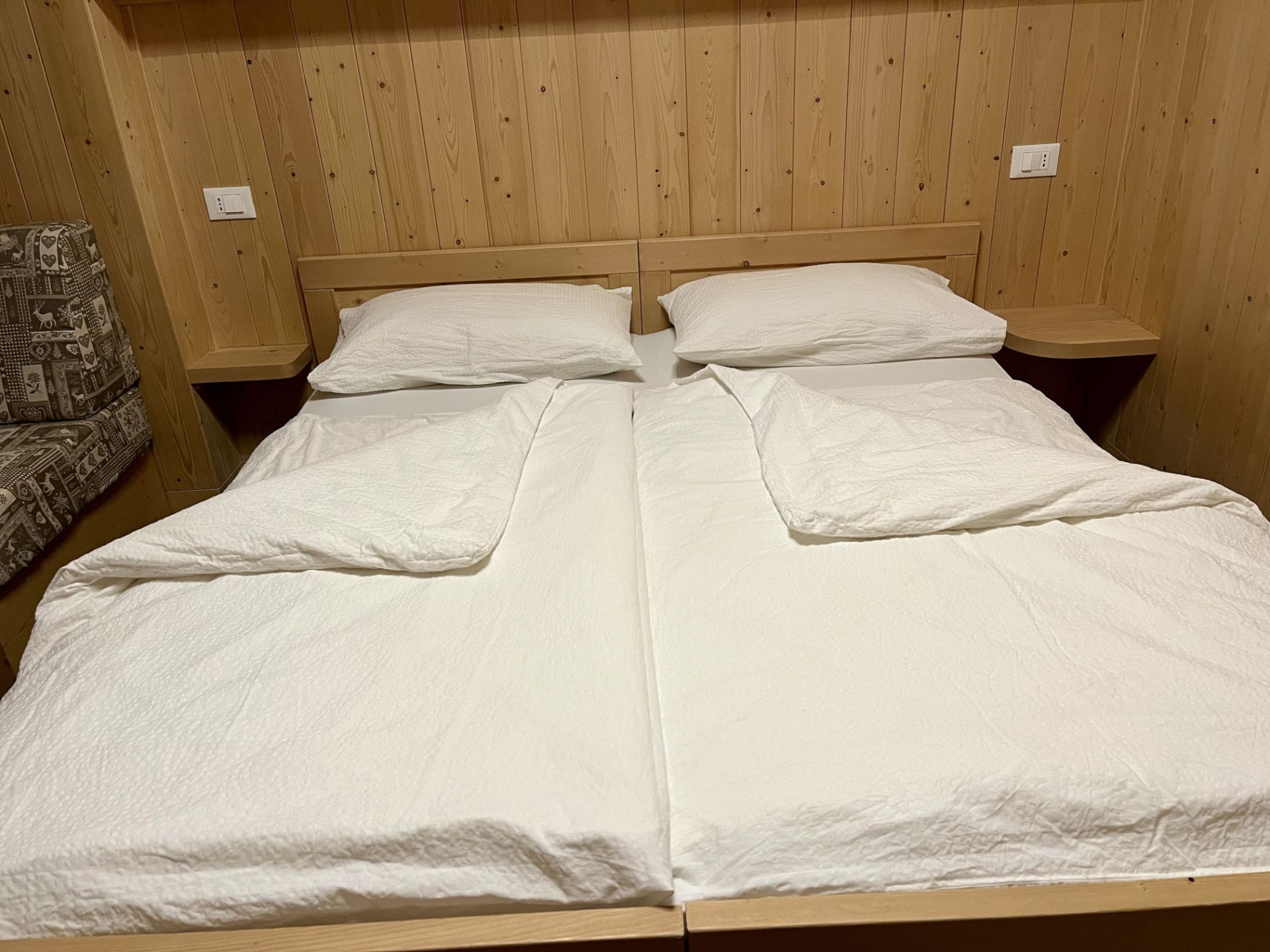 I letti sono preparati con piumoni singoli alla tedesca.